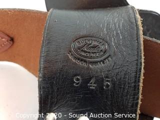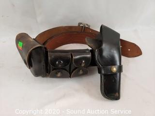 Lot Details: Includes Bucheimer 945 holster with 48" belt, leather holster with 44" belt and 44" ammo belt.