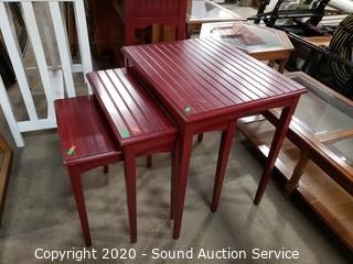 Lot #0016: 3pc Dark Red Nesting Tables