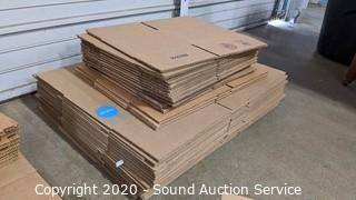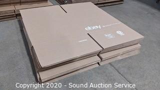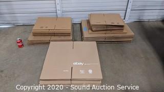 Lot Details: (15) 12x9x6, (14) 10x8x6, (9) 12x12x6, (22) 16x12x8, (15) 12x12x12. Some have eBay logo.
