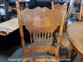 Lot Details: Comes with 6 chairs, have carved backs & one 24" leaf. 30" H x 48" Dia. In excellent condition.