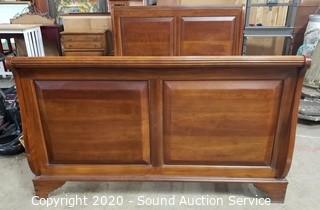 Lot Details: In excellent condition. Matches the previous 3 lots. Cherry? finish. In excellent condition. Does not come with a mattress or box spring. 38" & 48" tall headboard & footboard.