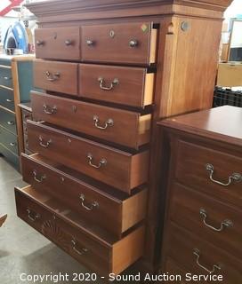 Lot Details: 6 Drawers, Cherry? finish. In excellent condition. Matches the next 2 lots. 61" H x 42" W x 21" D.