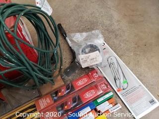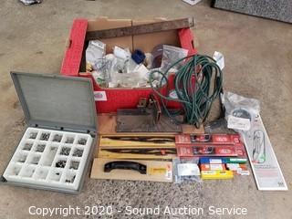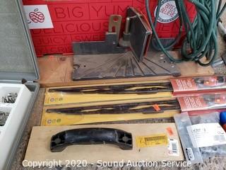 Lot Details: Includes screws, nuts, bolts, 22" windshield wiper blades, miter box, float, extension cord, Morse threading and cutting bits and more.