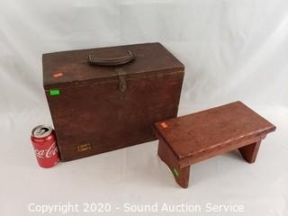 Lot #0255: Wood Tool Chest & Stool