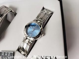 Lot Details: Stainless with white & blue faces. All need new batteries. Comes with original boxes. Boxes may have some damage. Each set has $149 original price tag.