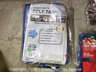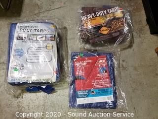 Lot Details: 8'ft x 10'ft blue, 12'ft x 16'ft brown, (2) 12'ft x 16'ft blue.