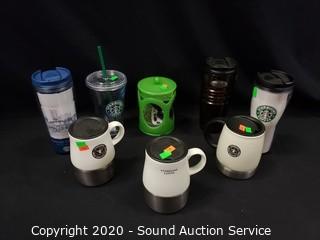 Lot #0287: 8 Starbucks Travel Mugs, Cup & Bodum Press
