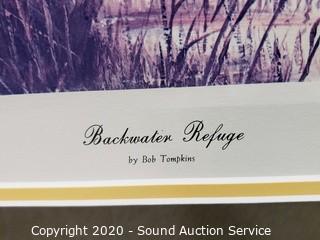 Lot Details: Titled "Backwater Refuge", #676/950. Pen signed by artist. Beautifully framed, matted, with glass. 32" x 26".