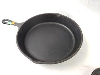 Lot #0149: Cast Iron Skillet, Flat Griddle & Bacon Press