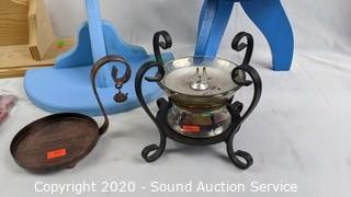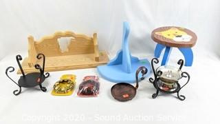 Lot #0383: Trinket Shelves, Lion Stool & Candle Accessories