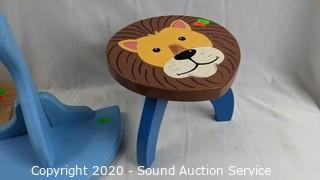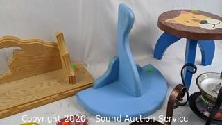 Lot Details: Stool is 7" x 8", shelves are 10" and 18" long.