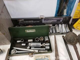 Some Beautiful Furniture (Teak, Oak, Pine, Mid Century, Vintage), Armoire, Buffet, Easy Chairs, Folding Chairs, Accent Chairs, Cabinets, Unique Table Lamps, Floor Lamps, Adjustable Twin Bed, Bar, Bookcases, Various Books, Starbucks Coffee Mugs & Ornaments, Heavy Duty Totes, KitchenAid Mixer, Like New Vtg. Fishing Reels (some with original boxes), Fishing Supplies, Various Tools & Hardware, Chains, Chain Binders, Towing Supplies, Various Household & So Much More!!!