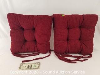 Lot #0357: 2 Burgundy Tie On Chair Pads