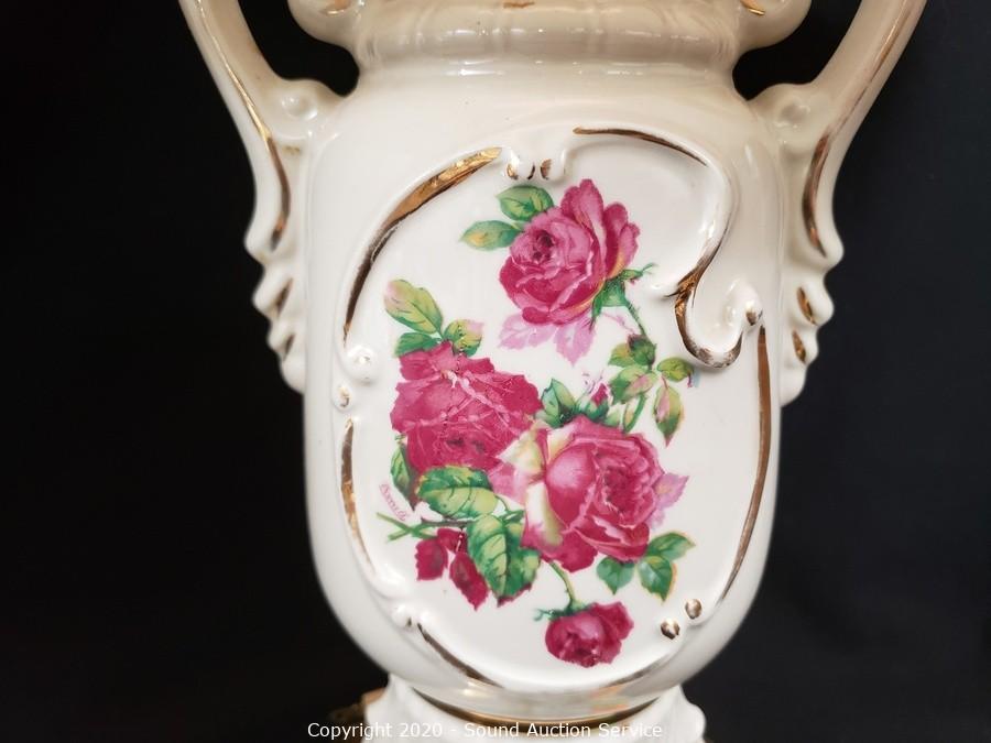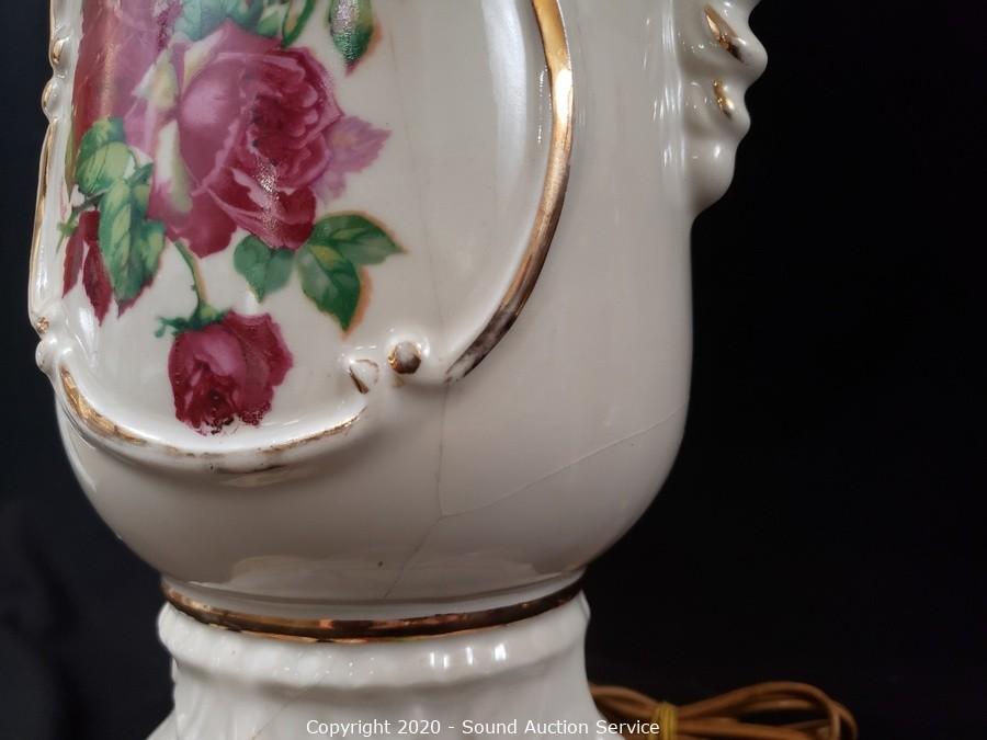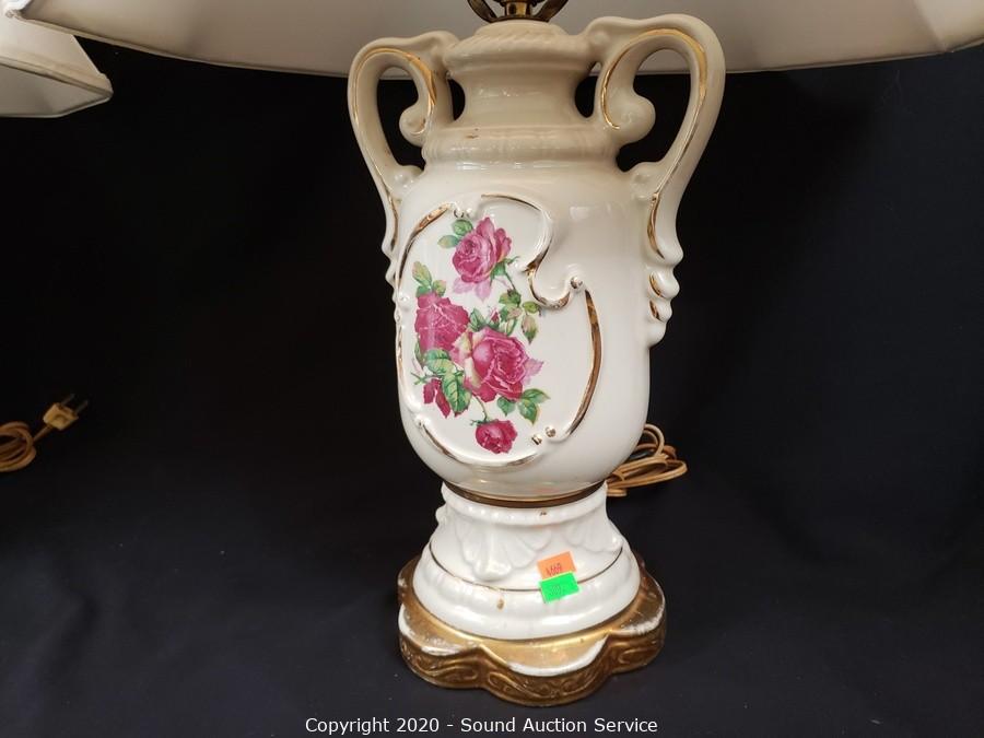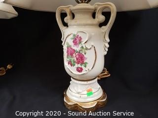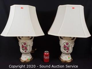 Lot #0309: 2 Porcelain Floral Lamps