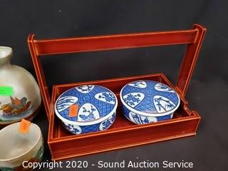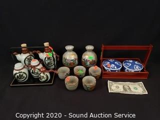 Lot #0322: Asian Saki Set, Table Set & Covered Dishes