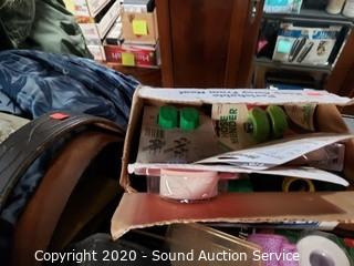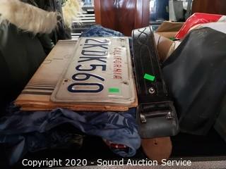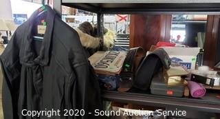 Lot Details: Leather Jackets (have a strong cigarette odor), Bushnell 10x50 binoculars, athletic tape, washboard, hose adapters & more.