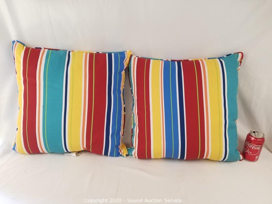Lot #0350: Like New Indoor/Outdoor Colorful Striped Pillows