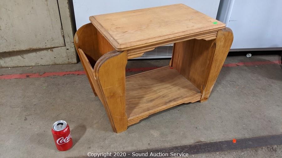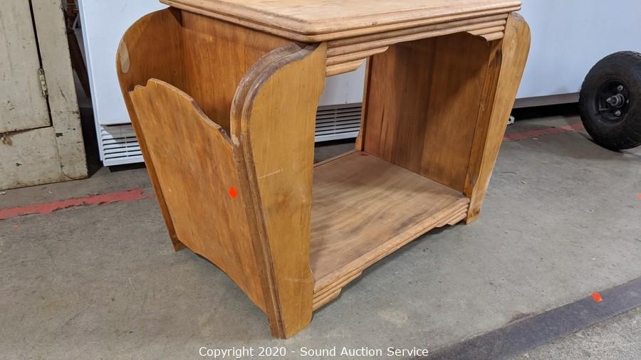 Lot #0348: Natural Wood Finish Magazine Side Table