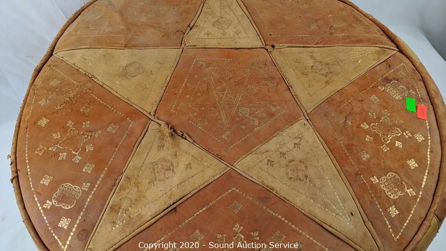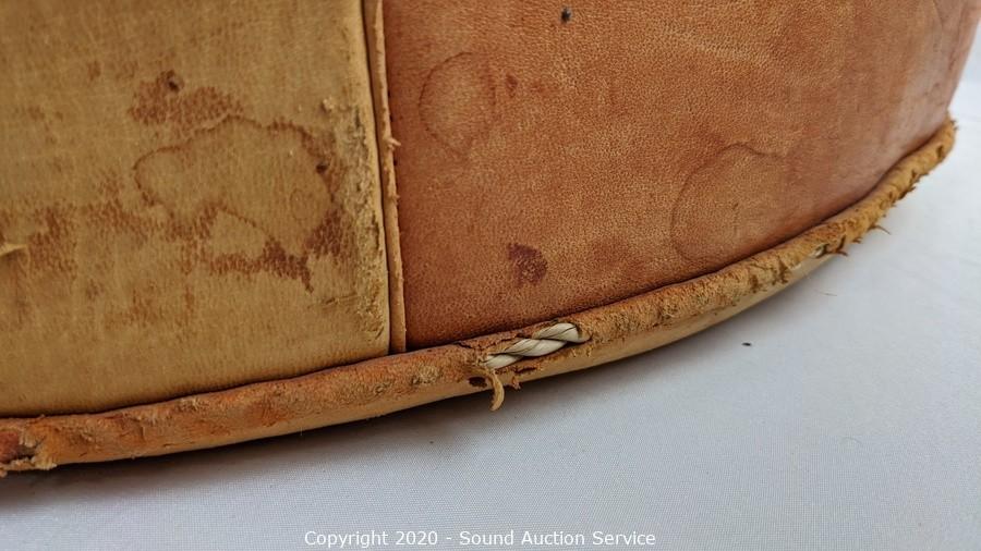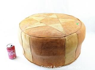 Lot #0301: Round Leather Ottoman