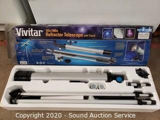 Lot #0202: Vivitar 50x/100x Refractor Telescope w/Tripod