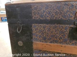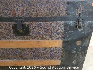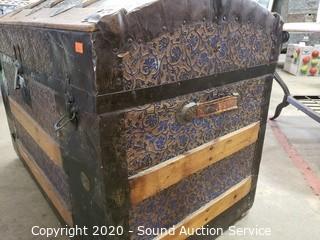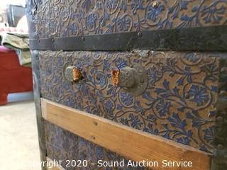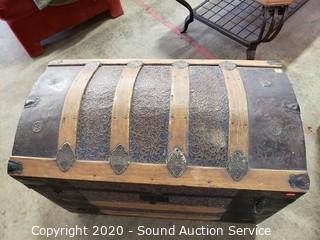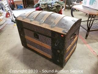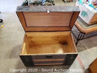 Lot #0077: Vtg. Wood Banded Tin Wrapped Trunk