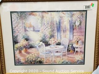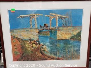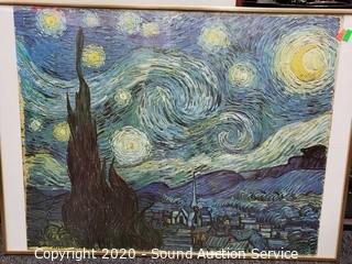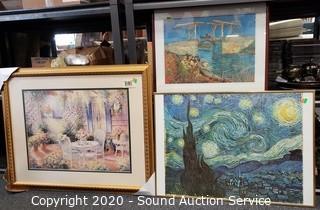 Lot Details: Includes Van Gogh Starry Night print (28" x 20"), Van Gogh style drawbridge print (17" x 21") and floral patio garden print (31" x 25").