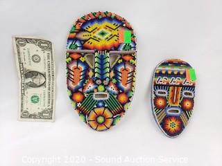 Lot #0051: 2 Original Huichol Tribe Beaded Face Masks