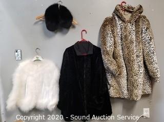 Lot #0005: 3 Ladies Faux Fur & Feather Jackets S:3XL