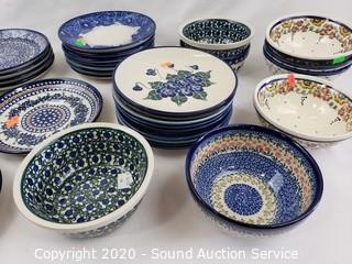 Lot #0069: 31pc Polish Boleslawiec Pottery Bowls & Plates