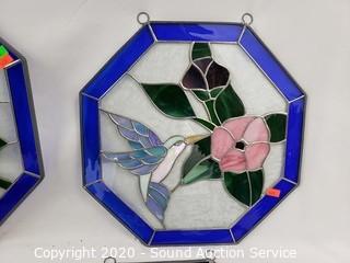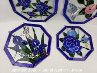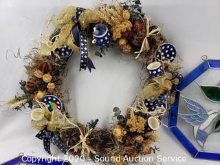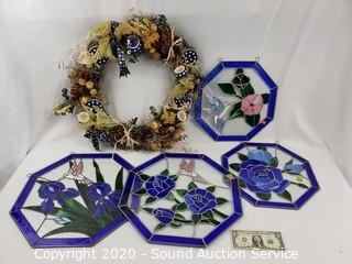 Lot #0086: 4 Stained Glass Window Decor & Decorative Wreath