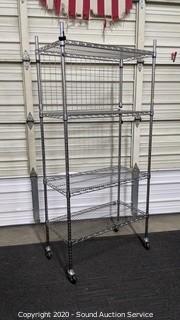 Lot #0385: 4-Tier Chrome Steel Rolling Utility Shelf