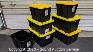Lot #0334: 7 Heavy Duty HDX 12 & 27 Gal. Totes w/6 Lids
