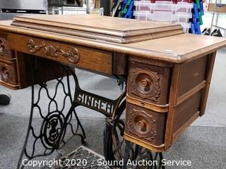 Lot #0308: Antique 1910 Singer Treadle Sewing Machine