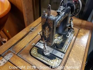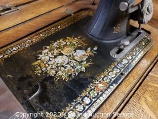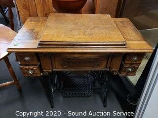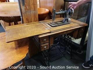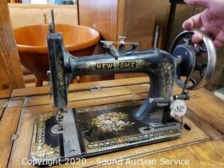 Lot #0298: Antique New Home Treadle Sewing Machine w/Cabinet