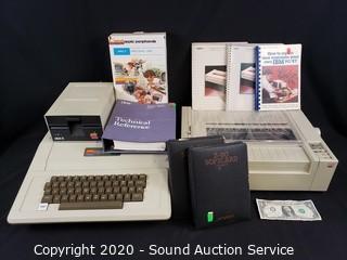 Lot Details: Model A2SA018. Comes with original box. Has power, appears to be in excellent condition. Also comes with Super Serial Card, IBM Technical Reference manual, Z-80 Soft Card Vol. 1 and 2 and Disc II drive. Image Writer printer has power, comes with manual and original box.