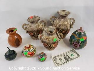 Lot #0359: Art Pottery Jug Fairy Lights & Gourd Trinket Boxes