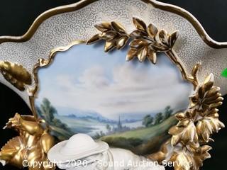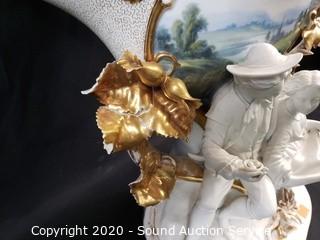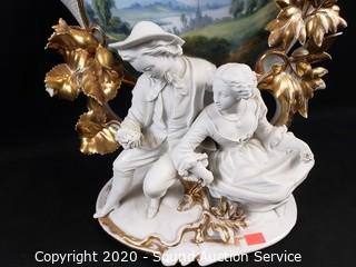Lot Details: Gold clad leaves & bisque figures. Some chips on the leaves. 11" x 16" x 6".