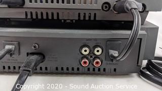 Lot Details: Comes with disc changer and remote. Works. Stacked 6" H x 14" W x 6" D.