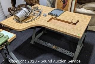 Lot #0332: Industrial Sewing Machine Table w/Clutch Motor