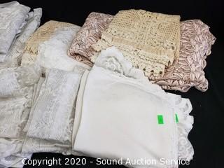 Lot Details: Includes 56" x 15" valance, 72" x 34" tablecloth, 32" x 24" tablecloth/runner, 36" x 24" corner valance and more.