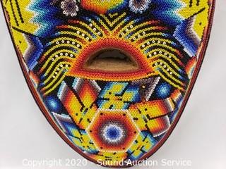 Lot #0055: Original Huichol Tribe Beaded Face Mask Sculpture