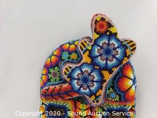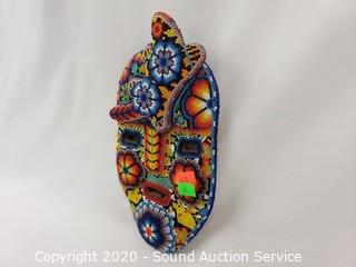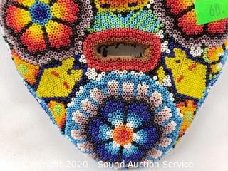 Lot #0060: Original Huichol Tribe Beaded Face Mask Sculpture