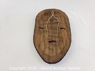 Lot Details: Solid wood, elaborately beaded and lizard adorned. Missing a few beads. 9" x 4.5" with string hanger.