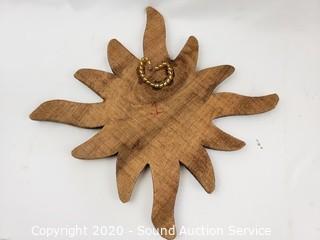 Lot Details: Solid wood, elaborately beaded with a beaded bracelet hanger on the back. 16" diameter. Do not see any issues.