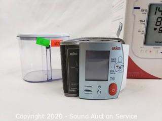 Lot Details: Includes Palm Massager digital therapy kit (appears complete), Omron automatic blood pressure monitor and Braun blood pressure monitor.