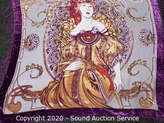 Lot #0037: Red Hat Throw & Velvet Silk Beaded Tapestry
