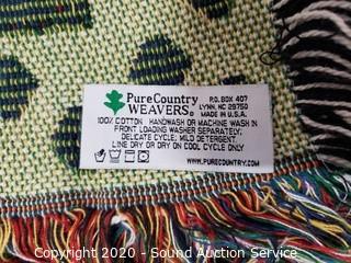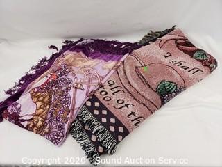 Lot Details: 50" x 72" throw, 40" x 40" tapestry.