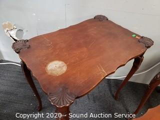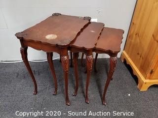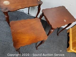 Lot Details: Carved scalloped corners, some wear to the finish. 25" x 24" x 16", 24.5" x 15" x 19.5" and 24" x 13.5" x 15.5". One of the legs is loose on the largest table.