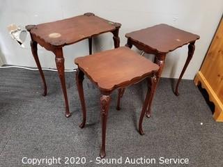 Lot #0191: Vtg. Mahogany Cabriole Leg 3pc Nesting Table Set