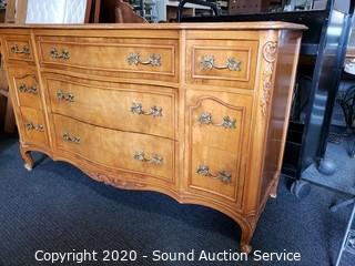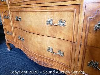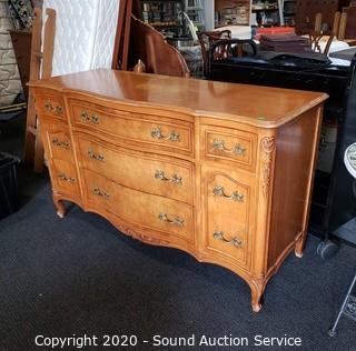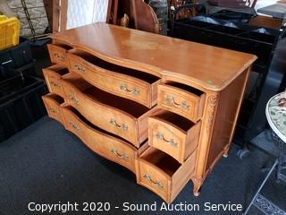 Lot #0206p: Vtg Serpentine French Provincial 9-Drawer Dresser